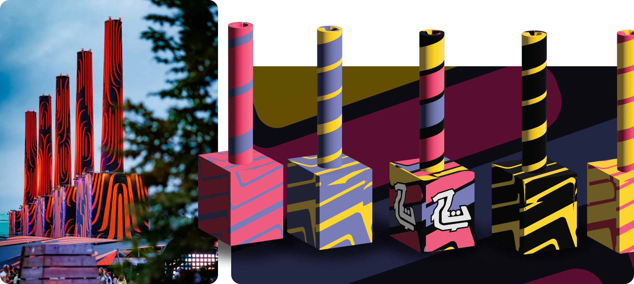 One of the most Iconic things of Lowlands are their 5 towers, as such a redesign to introduce the new brand would be a no-brainer.